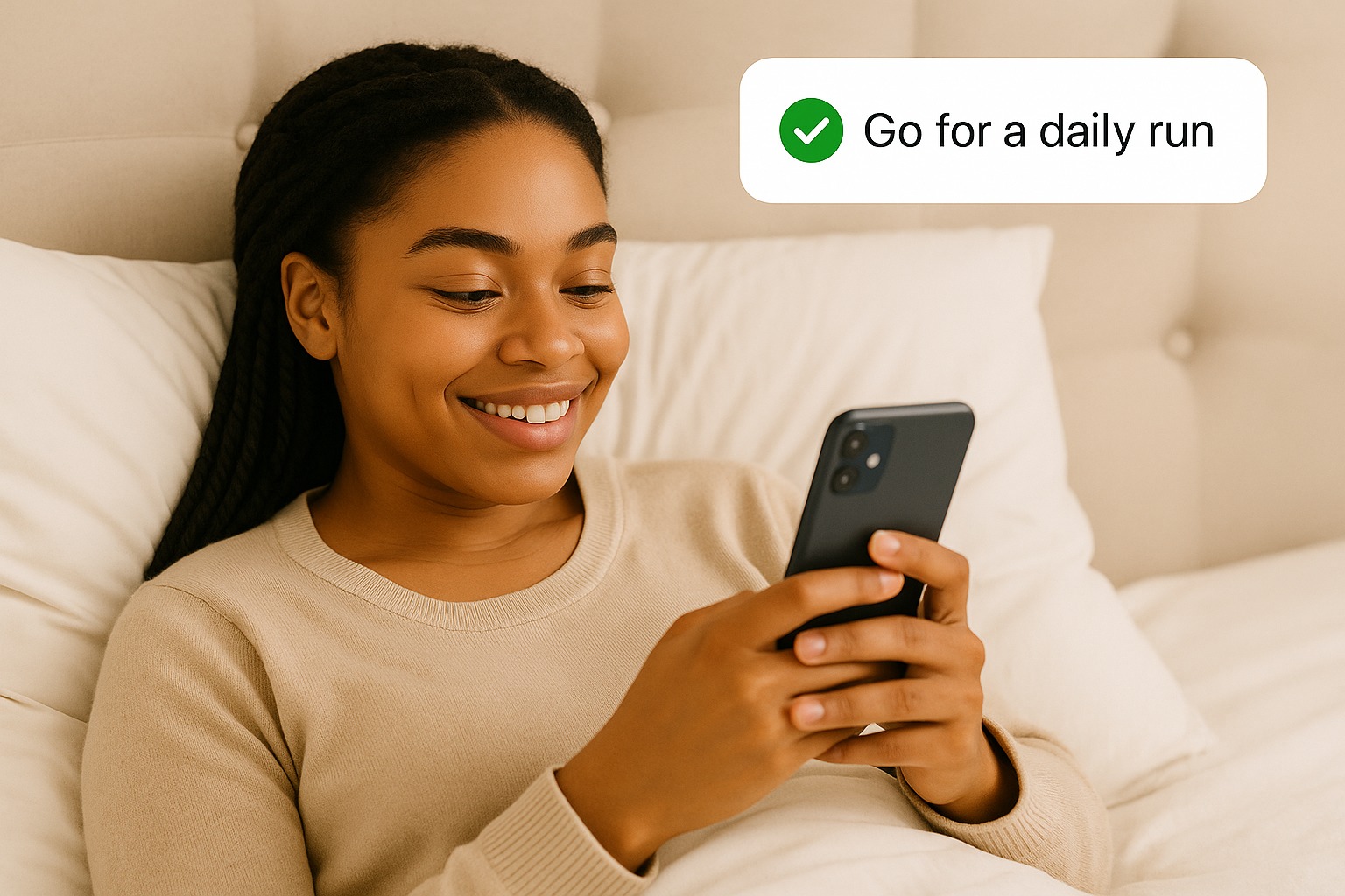 Choose from proven starter goals like “Write for 10 minutes” or “Walk daily” — or create your own.